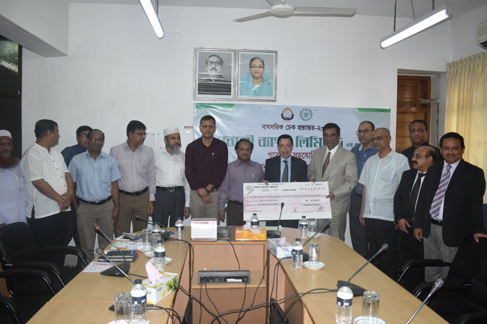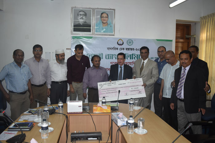 শাহজালাল বিজ্ঞান ও প্রযুক্তি বিশ্ববিদ্যালয়ের ভাইস চ্যান্সেলর প্রফেসর ফরিদ উদ্দিন আহমেদের কাছে ২১ সেপ্টেম্বর, ২০১৭ তারিখে পূবালী ব্যাংক লি. এর এক প্রতিনিধি দল গবেষণা খাতে ব্যয়ের জন্য চেক হস্তান্তর করেন।